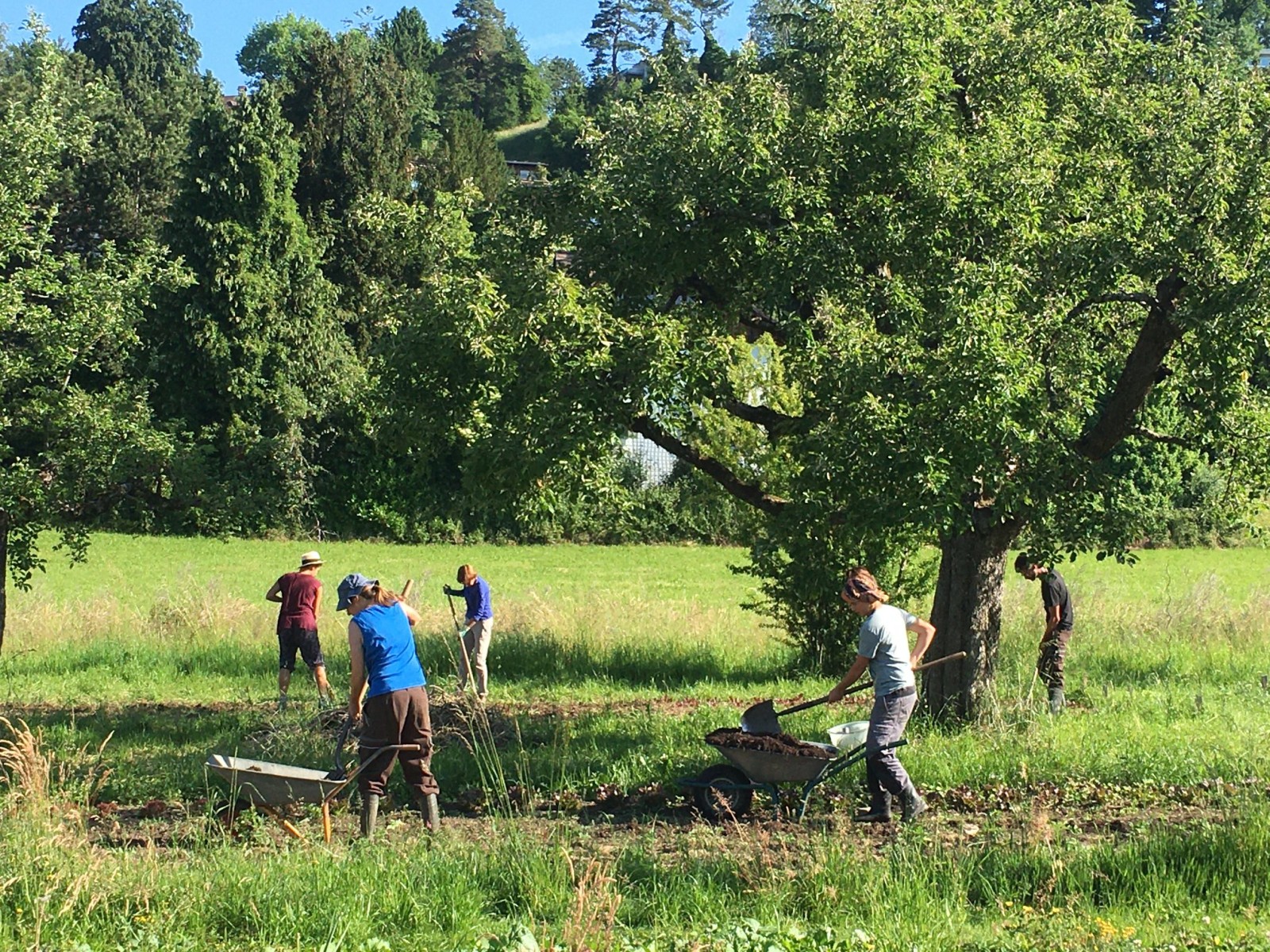 Die erweiterte FlĂ€che des Hofs wird seit Herbst 2018 gemĂ€ss einem Agroforstkonzept bepflanzt. WiesengrĂ€ben und Pflanzungen entlang der Höhenlinien halten das Wasser lĂ€nger auf dem Land. Die mehrjĂ€hrige Bepflanzung schont den Boden und fördert die Mykorrhizen (Bodenpilze), welche die Pflanzen zusĂ€tzlich unterstĂŒtzen